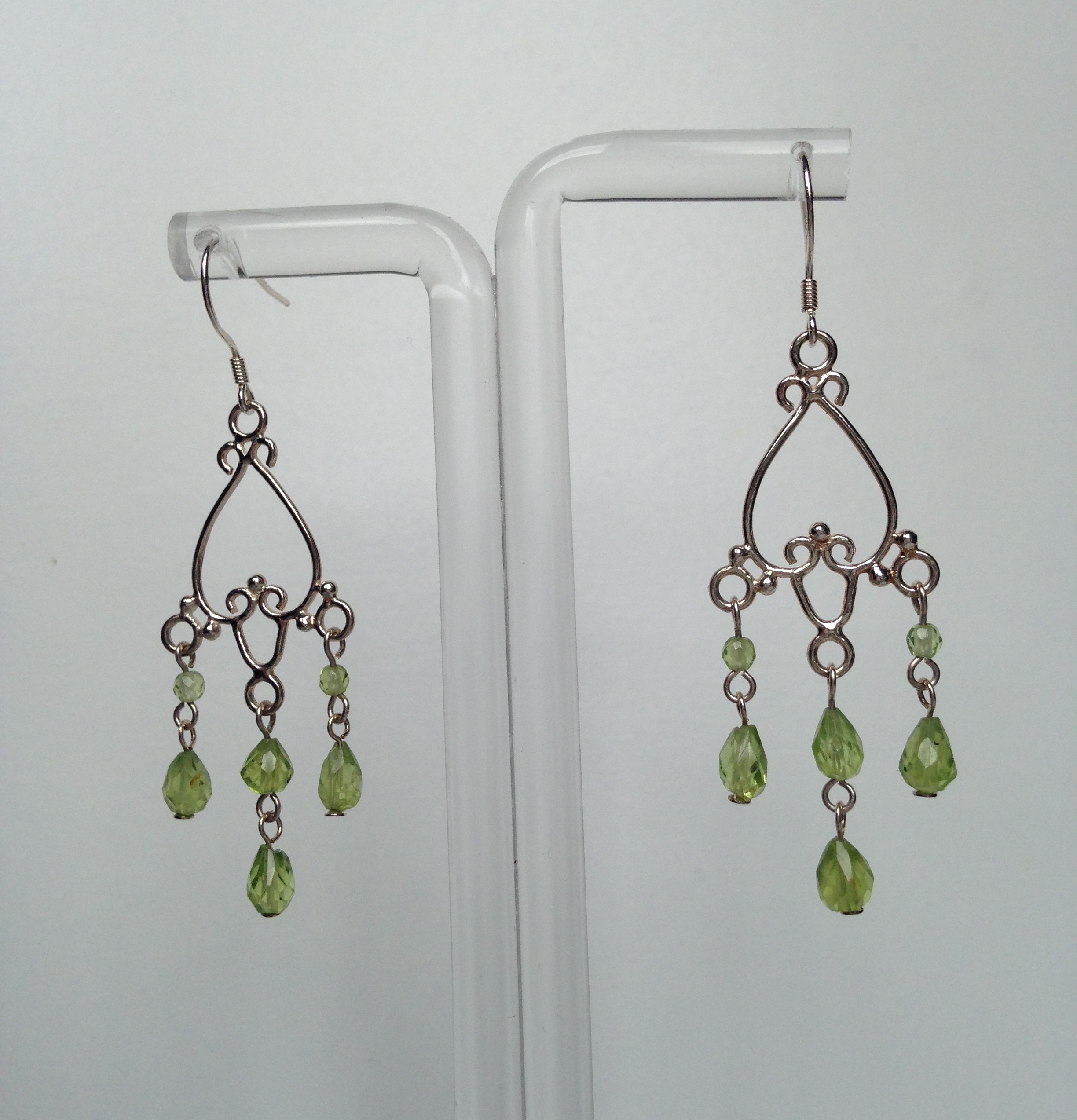 These lovely chandelier earrings are made with beautiful faceted peridot drops, small faceted rounds and sterling silver. They would look lovely on their own or teamed with one of my peridot necklaces.